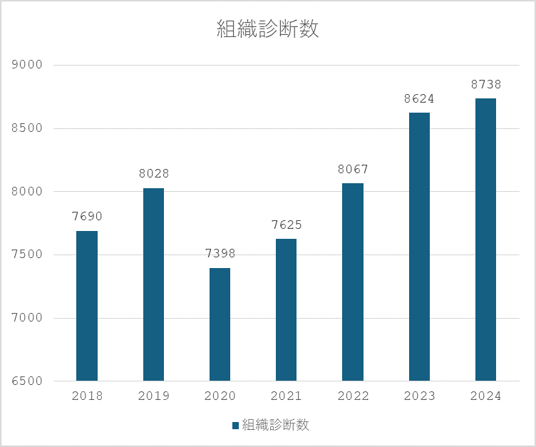 以上のような検査をまとめて病理組織診断といいますが、病理診断科ではこの病理組織診断を全身の臓器に対して行っています。