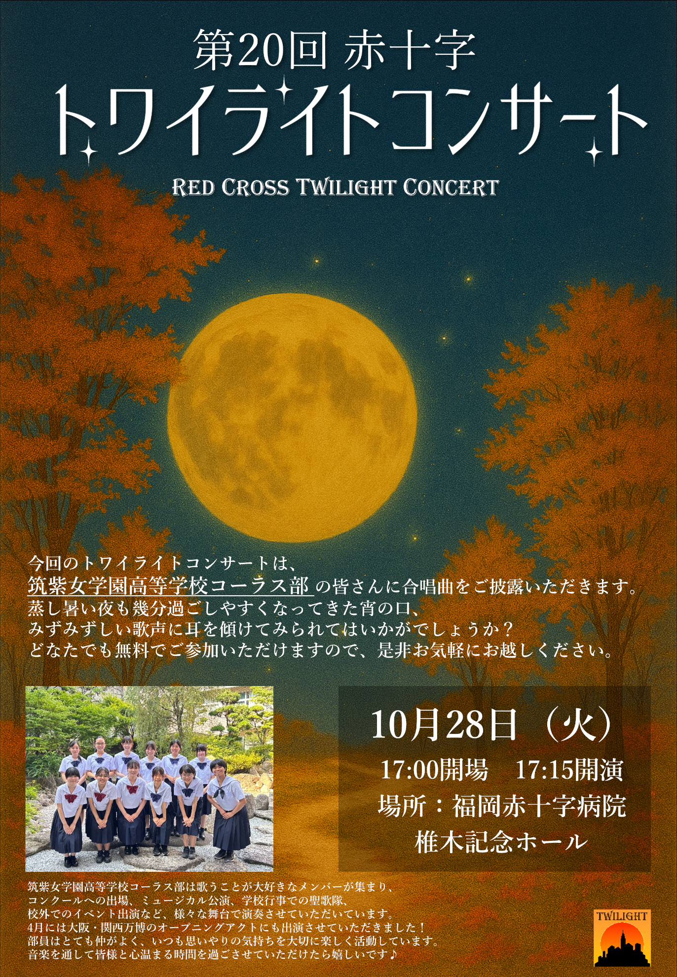 10月28日水曜日、当院にて第20回トワイライトコンサートを開催いたします。
