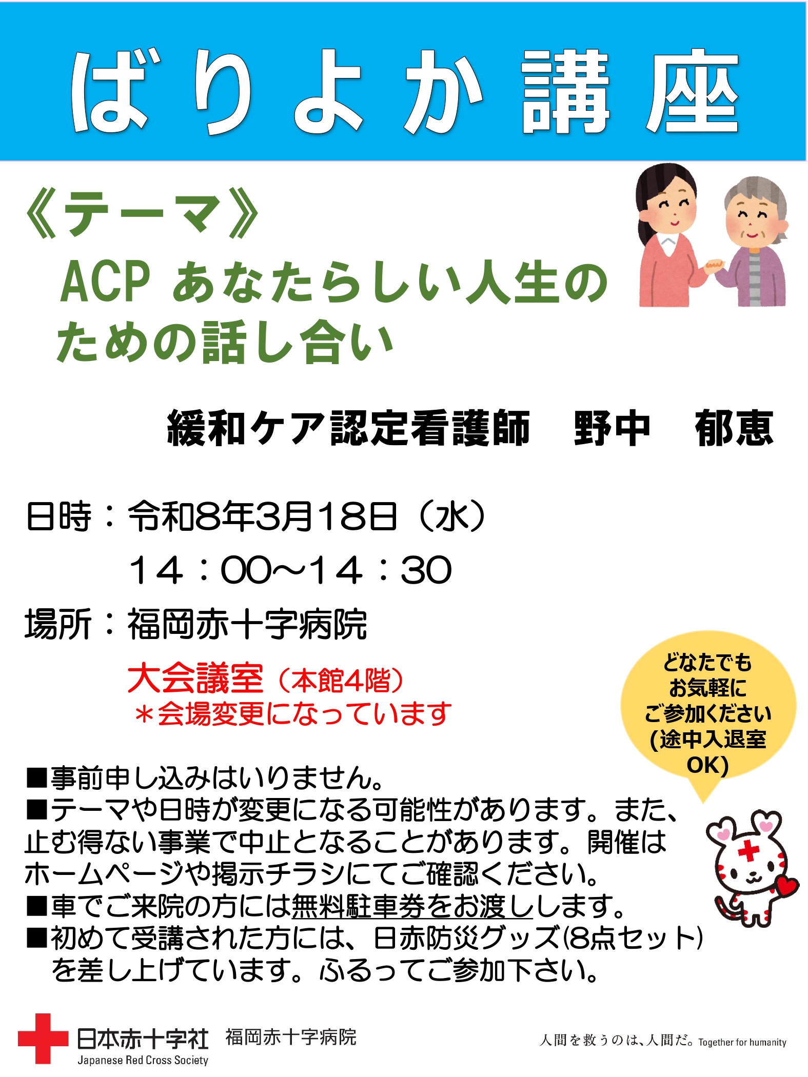 2026年3月18日(水)にアネックス棟2階椎木記念ホールにてばりよか講座を開催いたします。