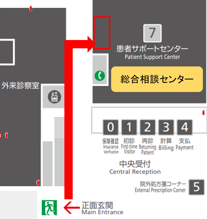 | 平日 | 受付時間 8:30~17:00 相談窓口 本館1階 総合相談センター (下記 地図参照) |